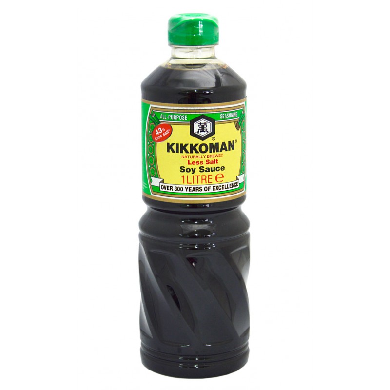 Salsa de soja baja en sodio menos 43%, respecto a la Salsa de Soja Kikkoman normal.